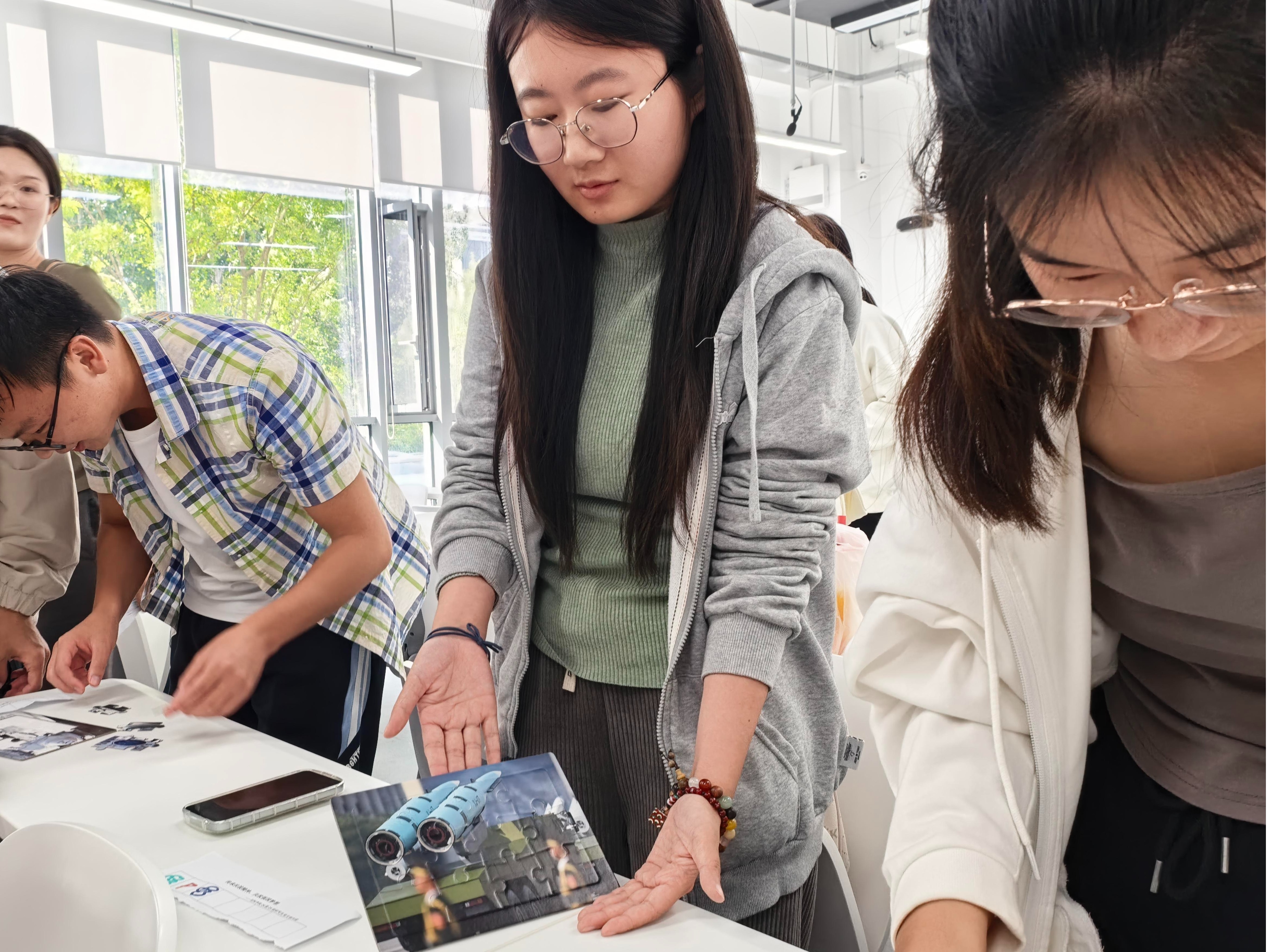 “国产武器装备拼图挑战”:通过亲手拼接DF-17高超音速导弹、JL-3潜射弹道导弹、YJ-17舰载巡航导弹等阅兵经典装备图像,参与者在碎片重组中重温大国重器的震撼亮相,进一步增强了民族自豪感与国防意识。