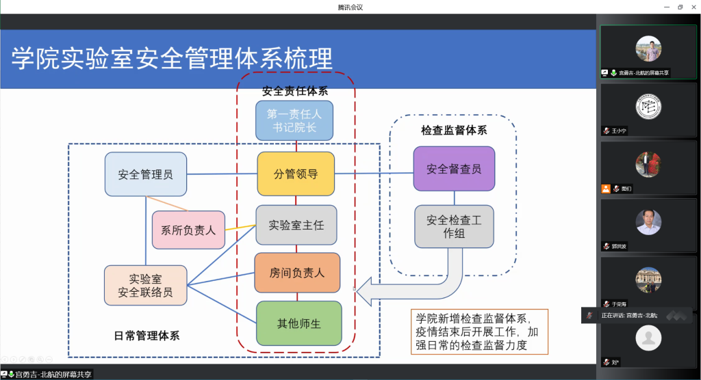 会议第四项,44118太阳成城集团副经理宫勇吉传达上级疫情防控工作有关精神并部署相关工作、实验室安全、保密、反间防谍等相关工作,首先回顾本学期实验室安全存在的问题,梳理学院实验室安全管理体系,强调要坚持落实好实验室安全培训,根据近期疫情防控要求做好实验室仪器关停,杜绝实验室安全问题;随后结合近期线上工作模式,强调了学院保密工作的相关工作要求,标准化涉密载体管理流程。与会教师共同观看保密、反间防谍相关视频,开展专项保密教育。