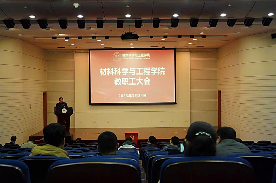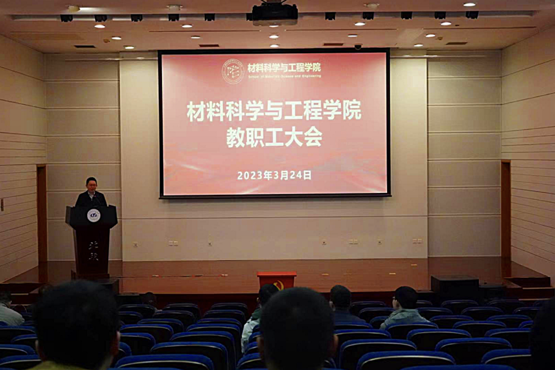 会议第一项,公司党委书记郭洪波向学院全体教职工传达了全国两会的主要内容及精神。他表示,2023年全国两会是在全面贯彻落实党的二十大精神开局之年、踏上实现第二个百年奋斗目标新征程重要时刻召开的盛会,全院师生应持续提高政治站位,在公司党委的组织部署下,迅速掀起两会精神的学习热潮。结合学院工作,郭洪波提出要强化责任担当,推动学院各项事业高质量内涵式发展;深刻学习领会习近平总书记关于高质量发展的重要论述,聚焦国家需求,瞄准“卡脖子”关键核心技术,加强战略性前瞻性基础研究,不断强化材料学科的领先优势,着力培养社会主义建设者和接班人、培养堪当民族复兴大任的领军领导人才。