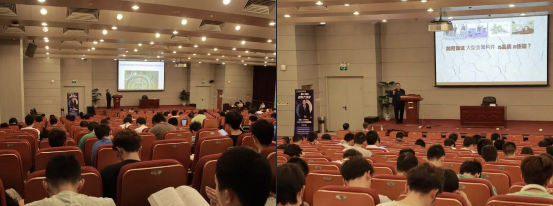 最后,王华明院士讲述了自己团队的科研故事,团队成员敢于牺牲、乐于奉献、勤于攻坚、勇于创新的事迹,及其展现的求实、创新、协作、牺牲、自律精神深深感染了现场师生。王华明院士精彩的报告赢得了与会师生的一致好评,报告厅内响起经久不息的掌声。