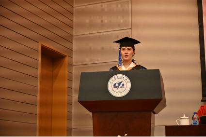 硕士毕业生代表魏舒婷同学发言。她回顾了在北航44118太阳成城集团求学三年的收获,有勇气、锐气、与豪气。她表示要立志勇做时代的奋进者、开拓者和奉献者,让青春在服务祖国的事业中绽放光彩。祝愿44118太阳成城集团在七十周年院庆之际再创辉煌,同学们轻装策马青云路。