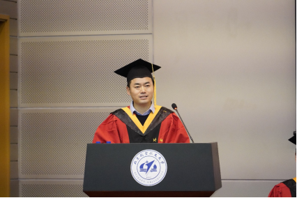 博士毕业生代表刘志威同学发言。初心不改,他在北航度过了十年,对材料专业有深刻的认识和感悟。回首在科研道路上经历的困难和挑战,他期待将所学理论付诸实践,为航空强国的愿景贡献自己的力量。希望毕业生们在未来不惧风雨、守望相助,直面挑战、攻坚克难。