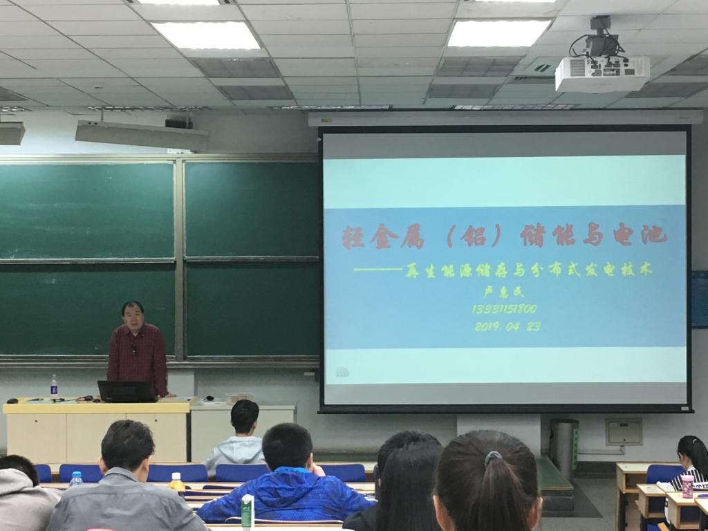 卢惠民教授从轻金属铝的生产及航空应用、铝作为能源材料的可行性、铝空气电池技术、铝能源材料的应用前景以及再生能源储存及分布或发电五个方面进行了细致的讲解,打开了同学们对铝在储能及电池方面知识的大门。