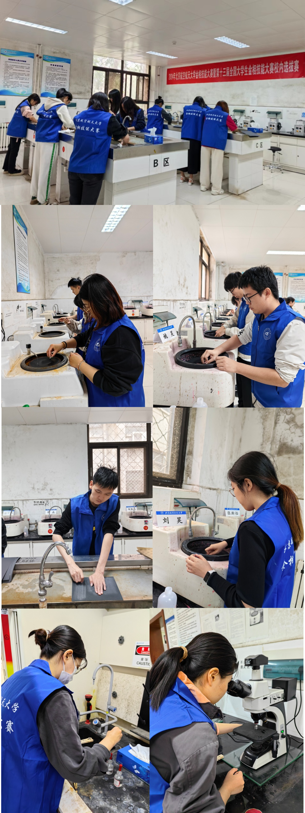 比赛现场,选手进行磨光、抛光、腐蚀、显微观察操作